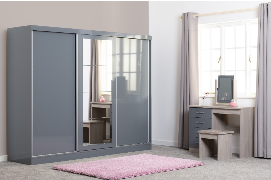 Toledo 3 Door Wardrobe – Grey/Oak Effect