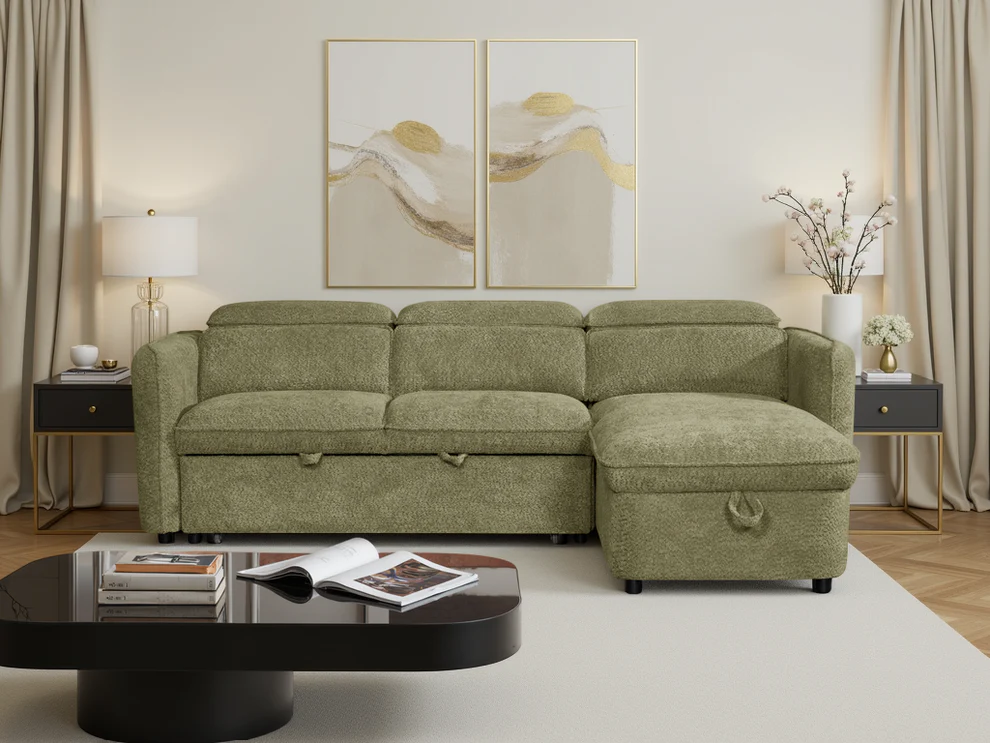 Capri Green Universal Corner Sofa Bed – Storage Corner Sofabed with Adjustable Headrests