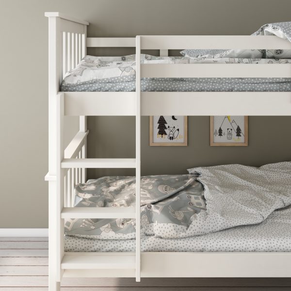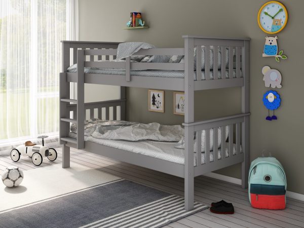 The Carra Single Bunk Bed Frame offers a contemporary and modern look for your bedroom. The bunk bed can be easily separated into two Single beds and both feature solid slatted bases which provide extra support to the mattresses (sold separately). Available in White or Grey – Single or Triple bunk bed.