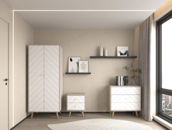 Dixie 2 Door Wardrobe – Stunning design with a dusty grey and white colour combination, giving this wardrobe a stylish, modern look that could complement a variety of interior design styles.   Matching bedroom furniture – Chest of draws and bedside table.   W X D X H mm 780 x 470 x 1825mm