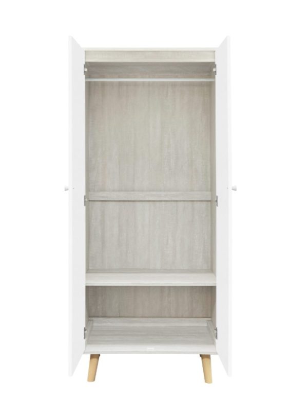 Stylish and modern 2 door wardrobe in Dusty grey and white.   Matching bedroom furniture available – Chest of draws and bedside table.