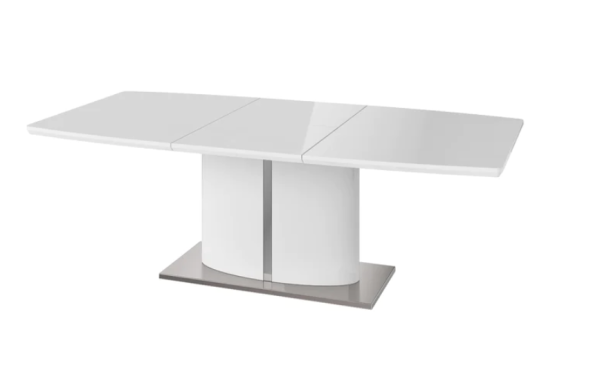 White High Gloss Extending Dining Table, Stainless Steel Base Available in White or Grey Gloss