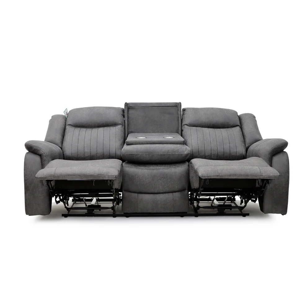 Leon Grey Electric Recliner Sofa – 3 Seater with USB & Cup Holders