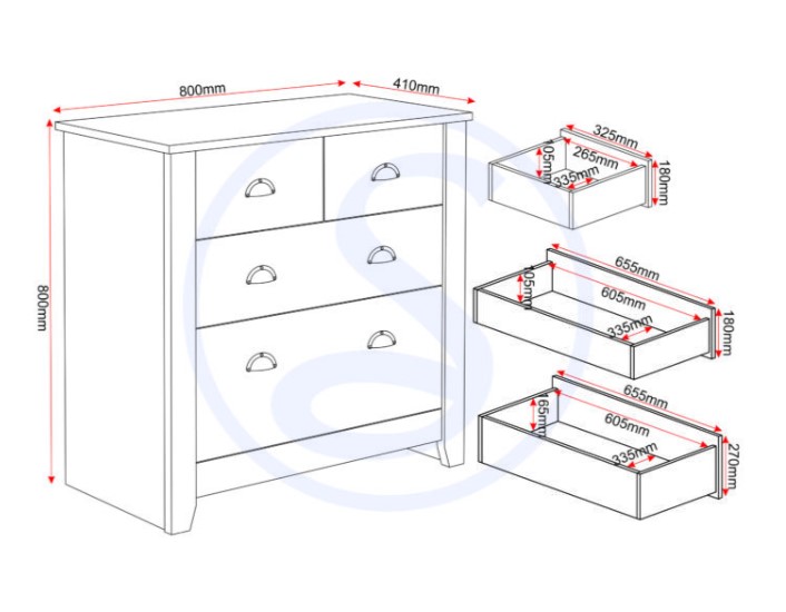 - 800 x 410 x 800 – 2+2 chest of drawers