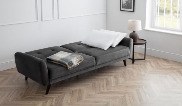 The Monza Sofabed is a stylish , highly functional piece with retro Scandinavian design influences. It is impeccably tailored in a smart, dark grey velvet fabric. Monza has a seat that is deeper than most similarly sized sofas, and is consequently incredibly comfortable. The Sofabed’s split back folds down easily to form a large, comfortable sleeping surface for two adults. Its clean lines and slick design make it a real focal point for any modern living space.   3 Seater, 2 Seater and Arm chair available