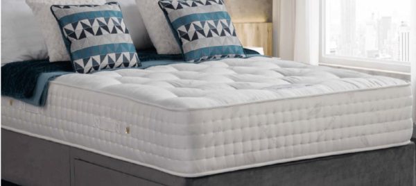 Beautiful, classic double sided, pocket spring bed with wool fillings and a hand tufted damask top designed for comfort and with FR properties. No finishing chemicals need be applied.
