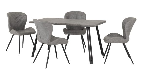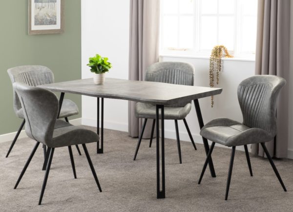 Quebec Wave Edge Dining Set – Concrete Effect & Grey Faux Leather Chairs