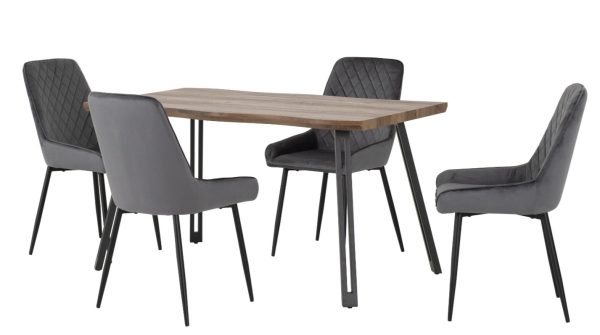 Quebec Wave Edge Dining Set – Medium Oak Effect & Grey Velvet Chairs