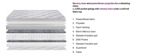 - Memory foam and passionflower properties for a refreshing sleep