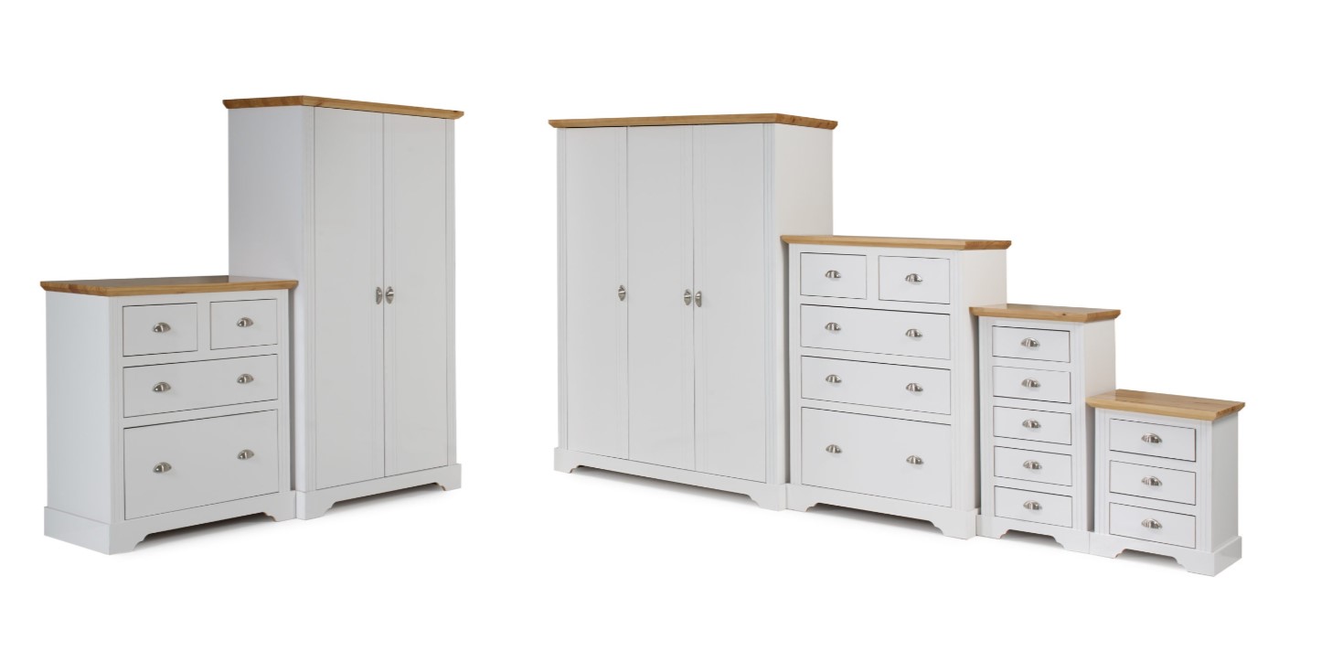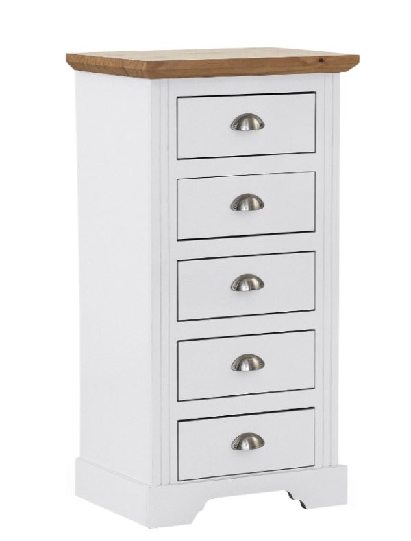 Toledo 5 Drawer Narrow Chest of Drawers – White/Oak Effect
