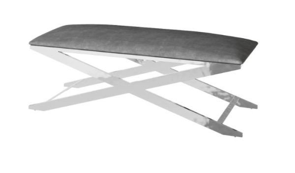 Plush velvet fabric Bench and Polished Stainless Steel Frame.   Available in Black, Silver grey, Dark grey