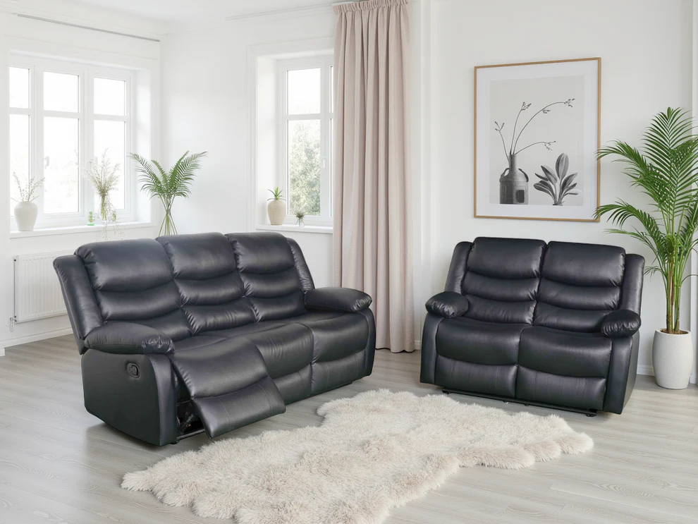 Conrad Black Bonded Leather Manual Recliner Sofa Set – 3+2 Seater Suite